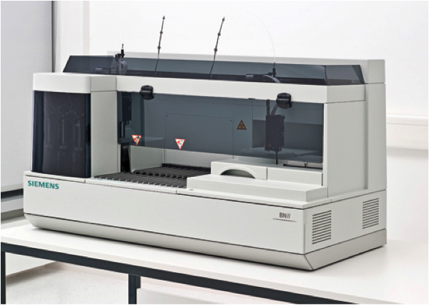 Il sistema BNII è costituito da un sistema nefelometrico di tipo aperto completamente automatico walk-away per la determinazione di proteine nel siero, liquor, urine o altro liquido biologico con le seguenti principali caratteristiche e modalità operative: